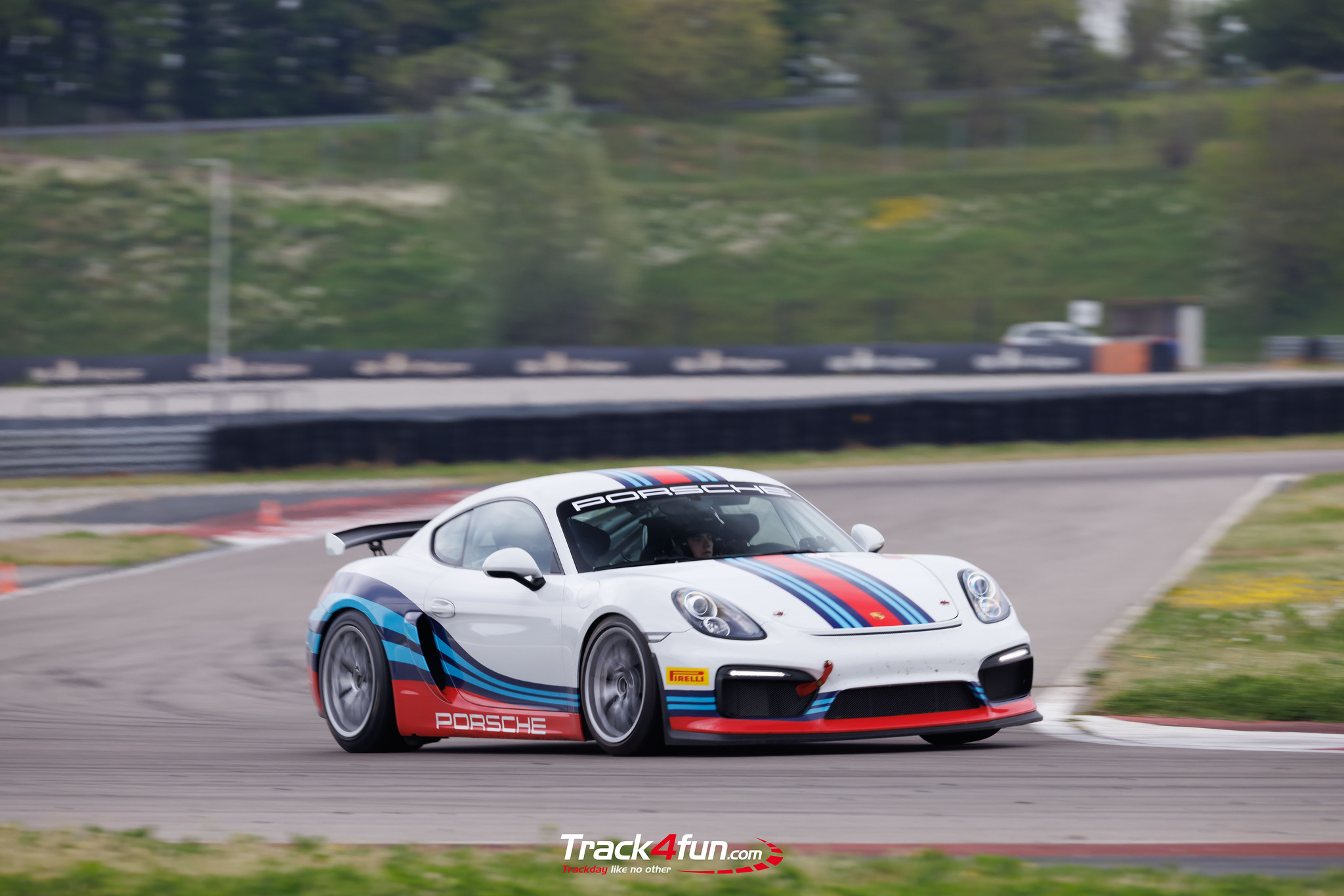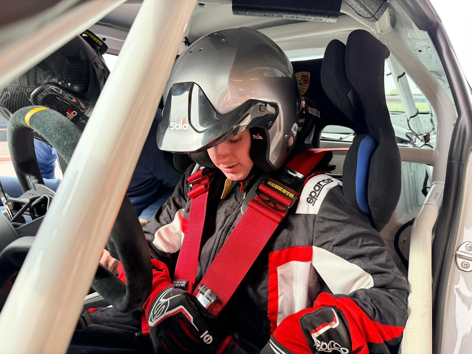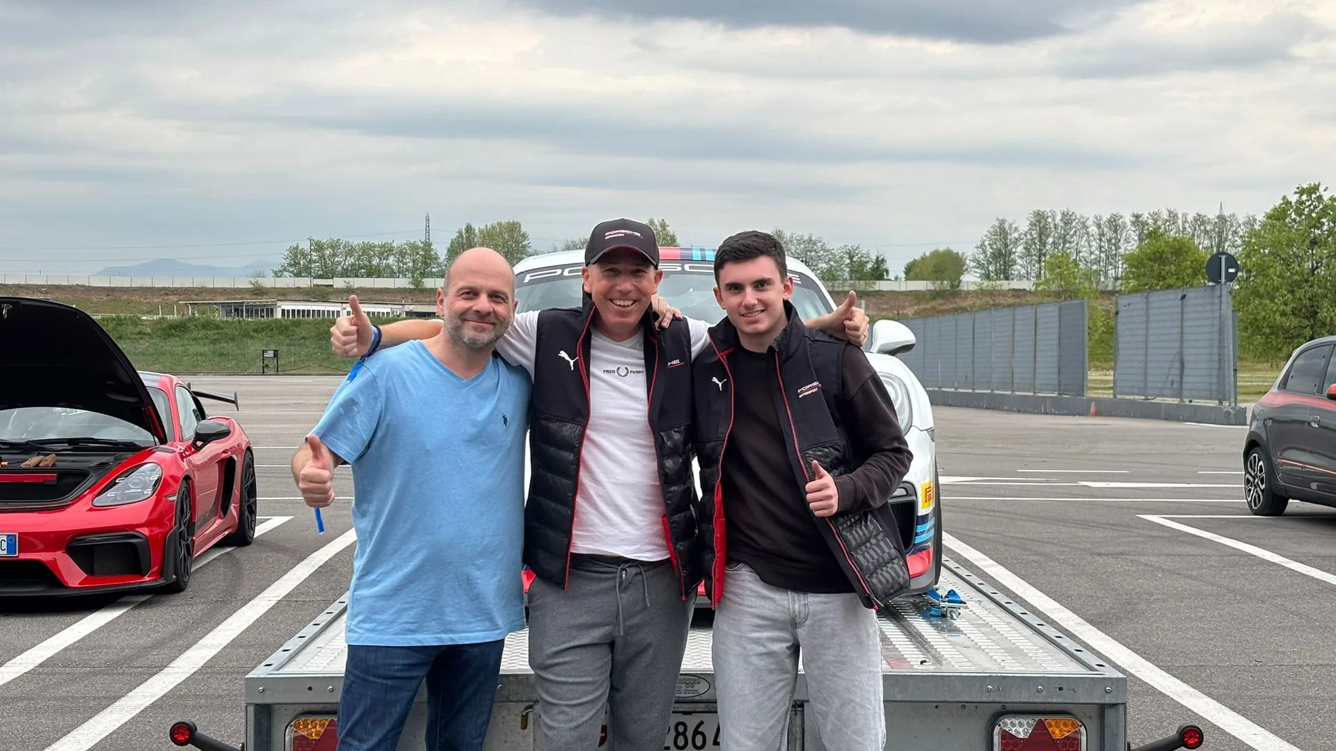 Oltre al go-kart, ho appena iniziato a girare anche con le auto da corsa. Il 12 aprile 2026 ho disputato il mio primo track day su una Porsche Cayman GT4 Clubsport al circuito di Franciacorta — un'esperienza completamente nuova rispetto al kart.